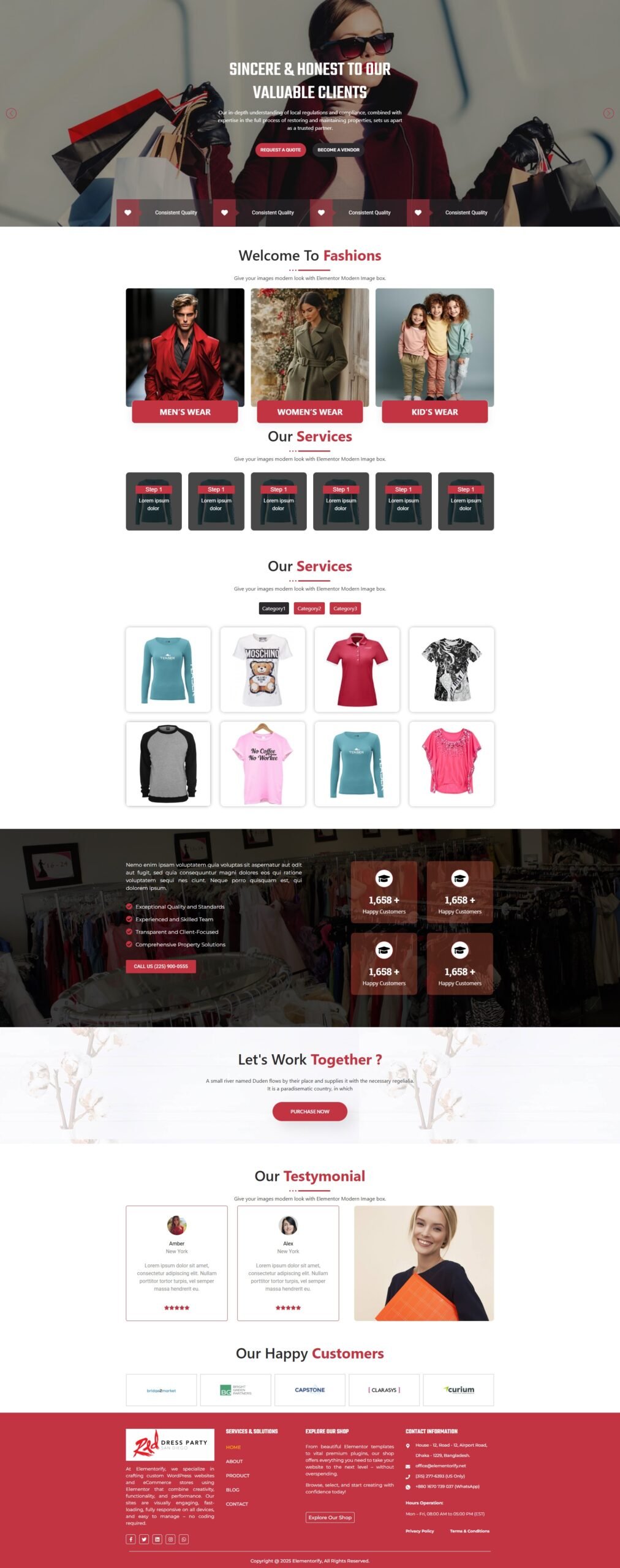 This project showcases Elementorify’s ability to deliver premium custom WordPress websites and eCommerce stores built with Elementor. Designed to be visually compelling and conversion-focused, the website offers a seamless user experience with fast load times and full responsiveness across all devices. Every element is crafted with performance, scalability, and ease of use in mind, empowering the client to manage content effortlessly without any coding - while presenting a strong, modern, and professional digital presence.